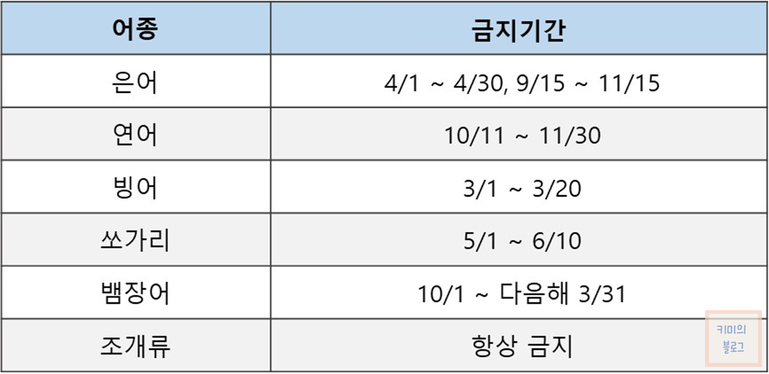 생태계 보호를 위해 포획 및 채취가 금지된 어종도 있습니다.