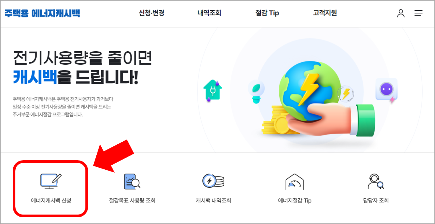 한전 에너지 캐시백 홈페이지에서 회원가입 후 신청하시면 됩니다.