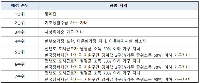 사회적 배려대상자 우선 선발
