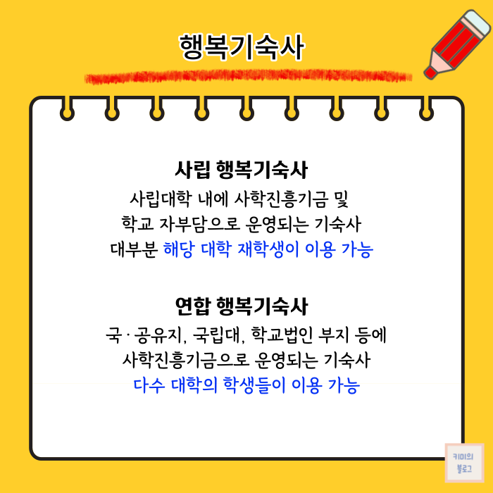 이 글에서는 전국에 있는 행복기숙사 신청자격과 신청기간, 신청방법 등을 정리해 보도록 하겠습니다.