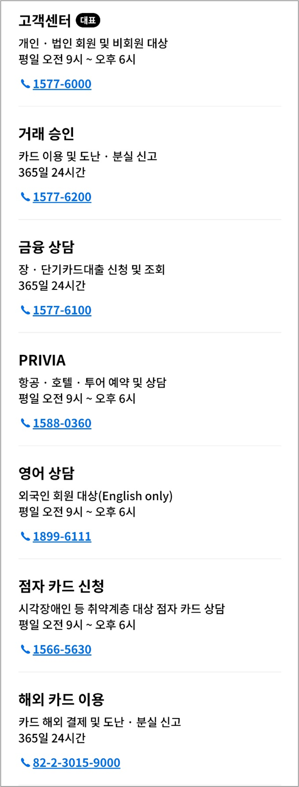 카드 해외 결제 및 도난·분실 신고는 82-2-3015-9000