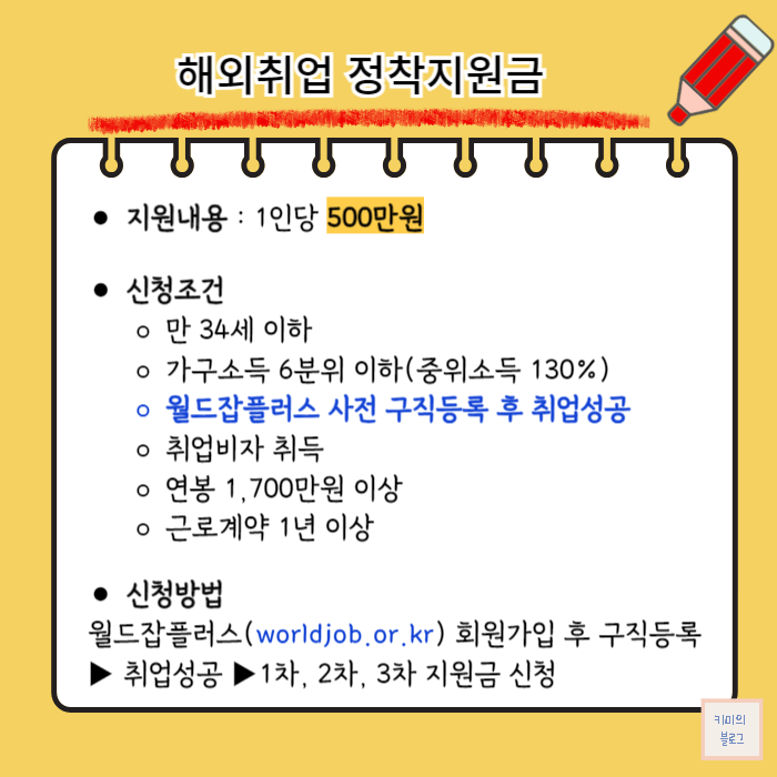 이번 포스팅에서는 해외취업 정착지원금의 지원내용과 신청조건, 신청방법에 대해 자세히 알아보겠습니다.