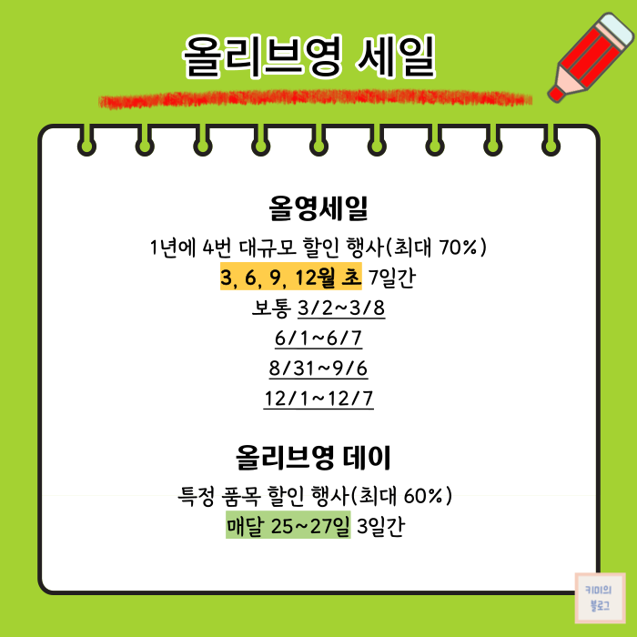 올리브영에서 화장품을 구매하고 났더니 일주일 만에 올영세일을 해서 아까웠던 적 있으신가요? 이런 불상사를 대비하기 위해 오늘은 2024년 올리브영 세일 기간에 대해서 정리해 보도록 하겠습니다.