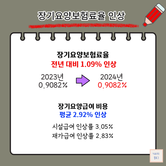 이번 글에서는 2024년 장기요양보험료율 인상 내용과 인상에 다른 영향을 알아보겠습니다.