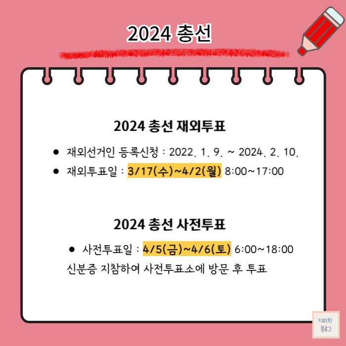 이렇게 2024년 총선 사전투표와 재외국민투표에 대해서 알아보았습니다.