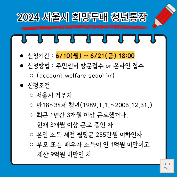 이 글에서는 서울시에서 시행하는 희망두배 청년통장 신청자격과 신청방법에 대해서 정리해 보았습니다. 2년만 납입해도 무려 360만 원의 지원금을 받을 수 있으니, 신청자격을 확인해 보시고 꼭 신청하시기 바랍니다.