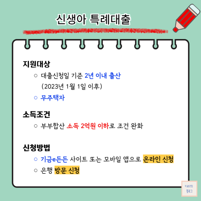 이번 글에서는 신생아 특례대출의 완화된 신청조건과 신청방법을 정리해 보도록 하겠습니다.