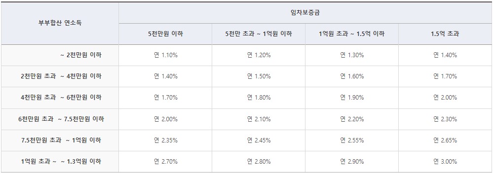 - 연소득 7.500만원 초과 : 2.3~3.0%