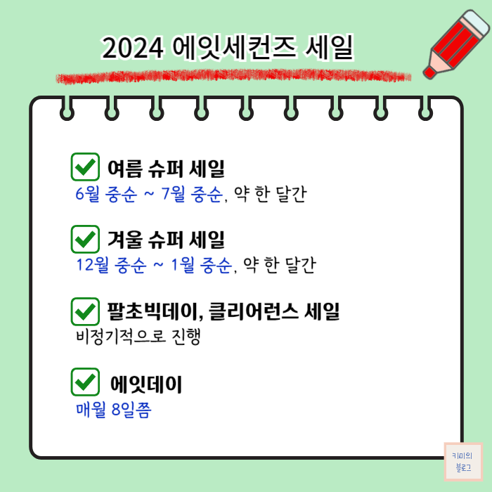 오늘은 에잇세컨즈의 2024년 세일 일정을 총정리해 보았습니다.