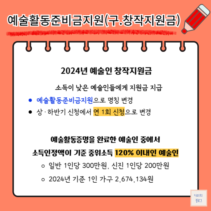 이번 글에서는 예술활동준비금지원의 지원 조건과 신청방법에 대해 정리해 보도록 하겠습니다.