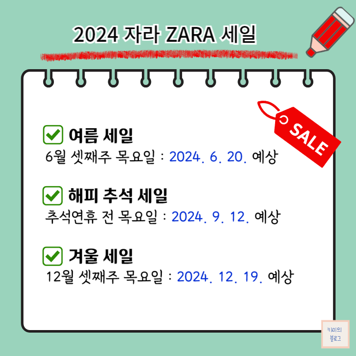 오늘은 자라의 2024년 세일 일정을 정리해 보도록 하겠습니다.
