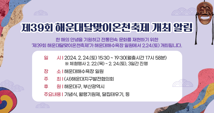 부산은 해운대구, 남구, 서구, 수영구 등에서 각각 정월대보름 행사가 진행됩니다.
