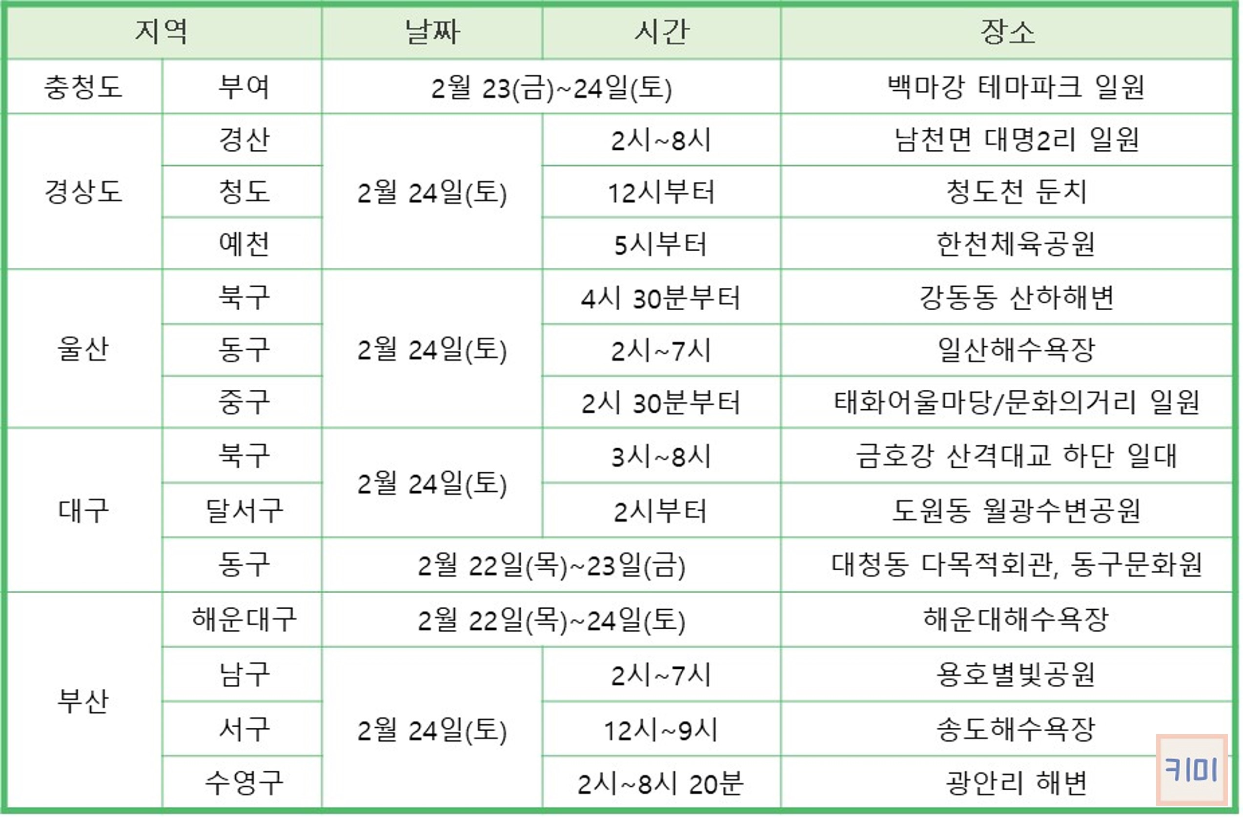 그 외 지역(서울, 인천, 경기, 강원, 전라 등)은 아래 링크 글에서 확인하실 수 있습니다.
