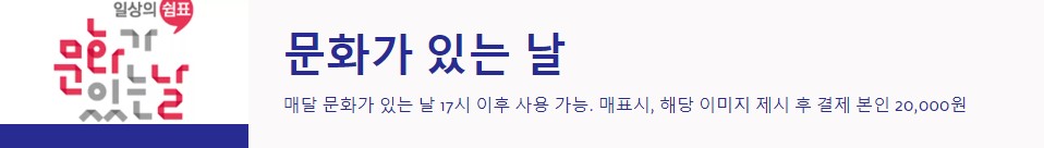 매달 마지막 수요일은 '문화가 있는 날'로, 17시 이후에 방문하면 40% 할인 혜택을 받을 수 있습니다. 매표소에서 아래 이미지를 제시하면 20,000원에 입장권 구입이 가능합니다.