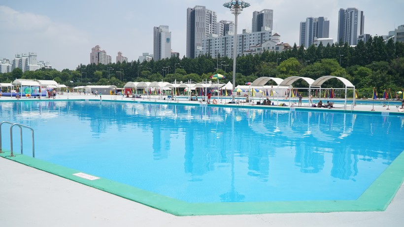 뚝섬 수영장은 지하철 7호선 자양역 근처에 있습니다. 수용인원은 3,500명입니다.