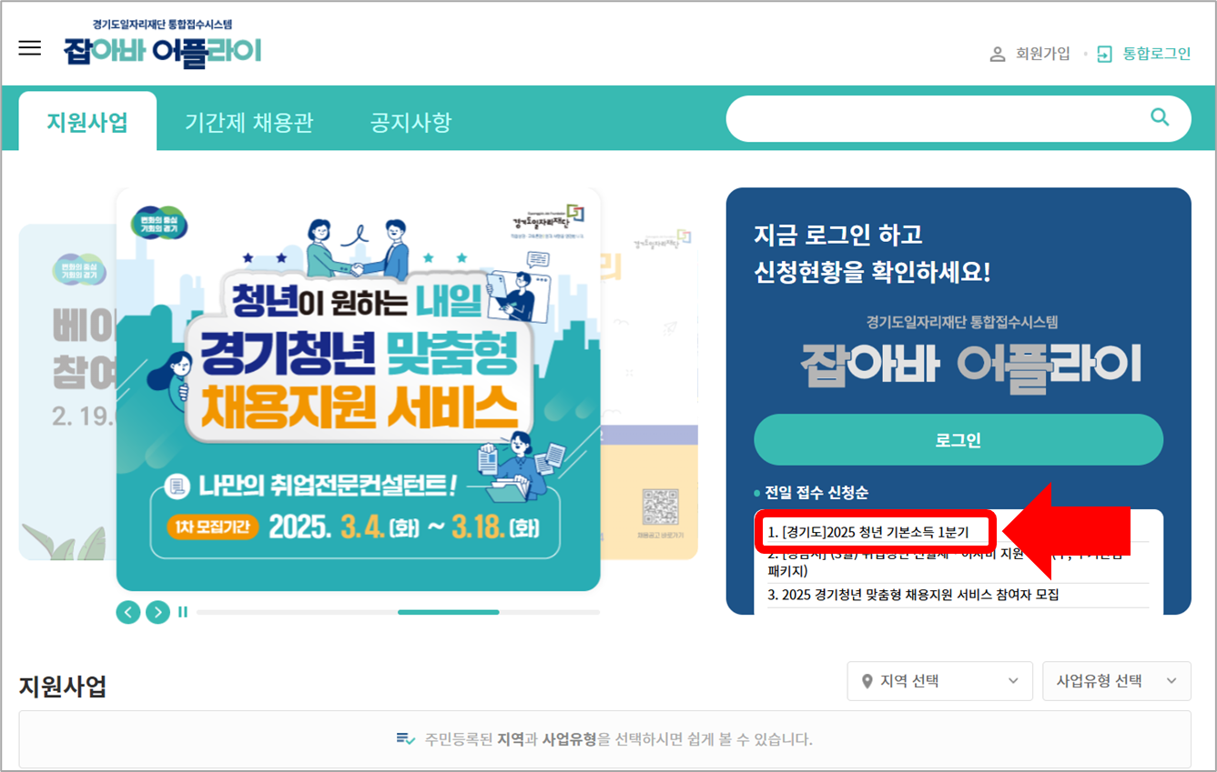 경기도 일자리플랫폼 '잡아바' 홈페이지를 통해 신청할 수 있습니다.
