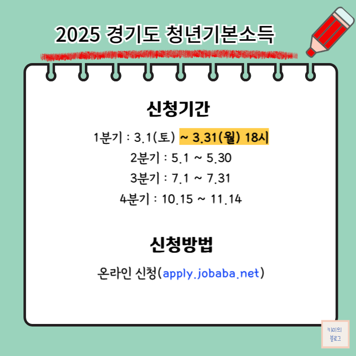 이 글에서는 2025년 경기도 청년기본소득 1분기 신청기간과 신청방법, 지원대상에 대해서 알아보겠습니다.