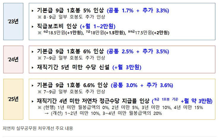 상대적으로 처우 수준이 낮은 저연차 공무원은 봉급을 추가로 인상하여