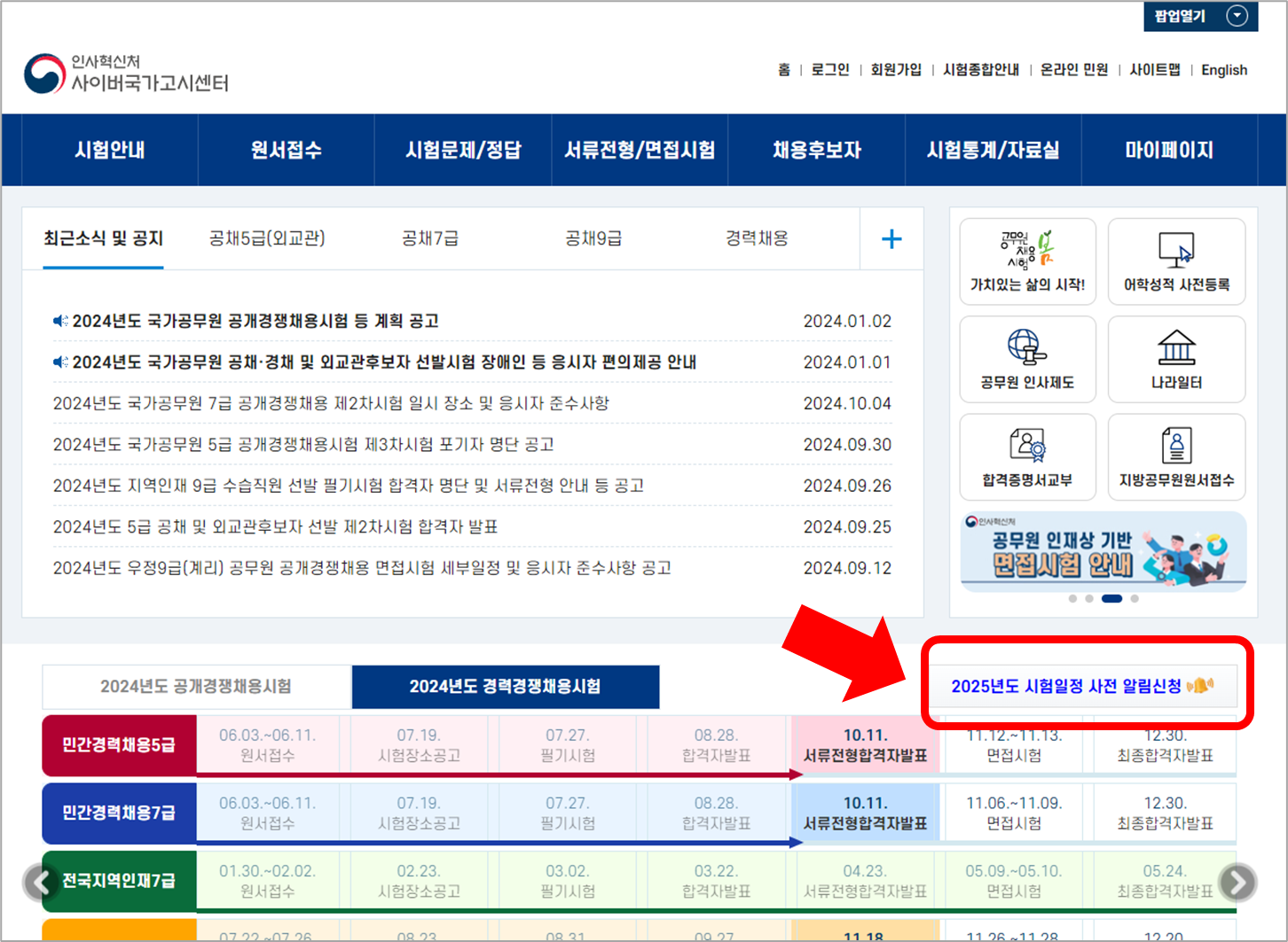 정확한 공무원 시험일정은 2025년 1월에 공고될 것으로 보입니다.