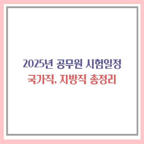 이 글에서는 2025년 공무원 시험일정을 정리해 보았습니다. 2025년 공무원 시험에 도전하는 모든 분들이 자신의 목표를 이루기를 응원합니다.