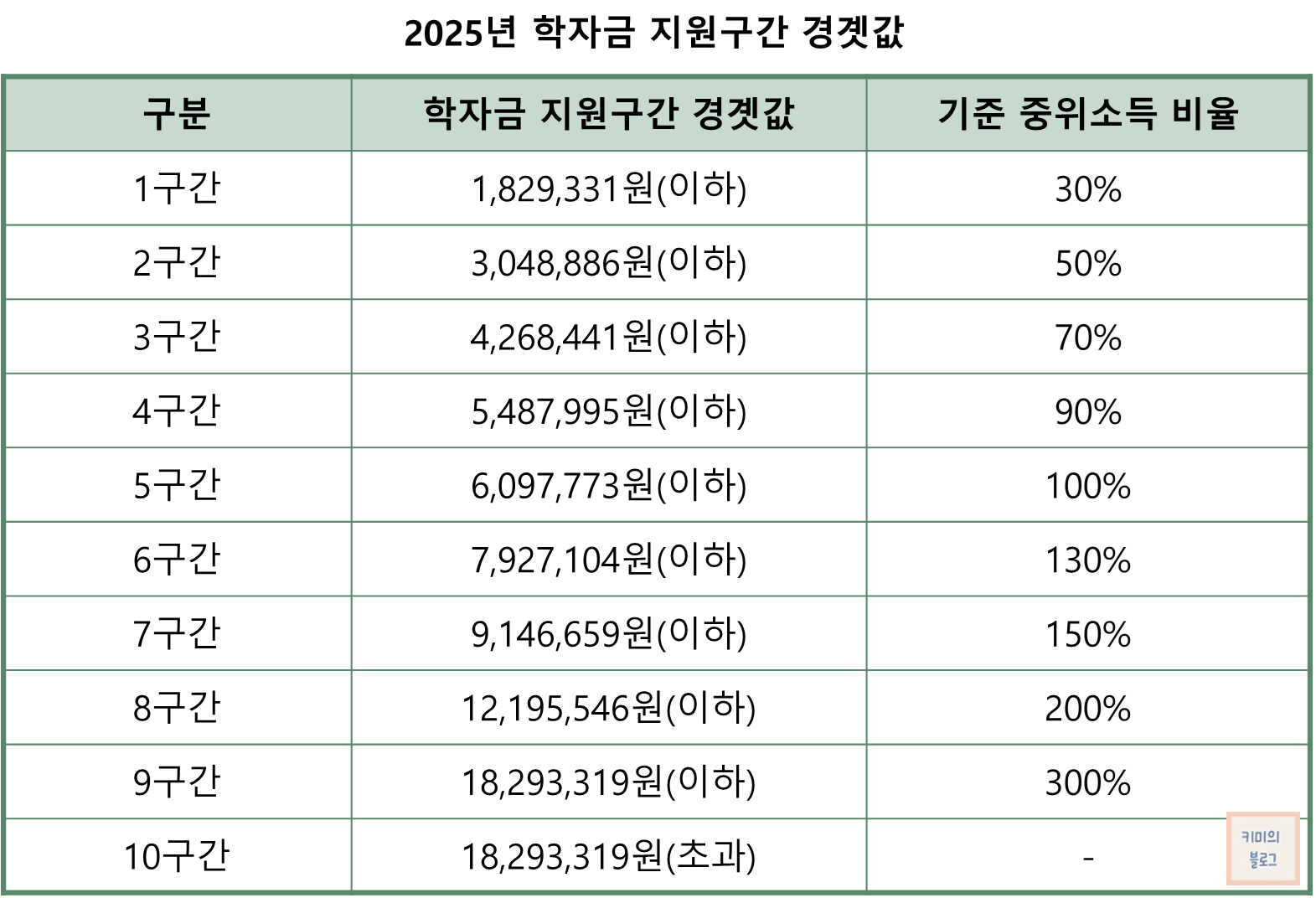 국가장학금 소득분위 기준