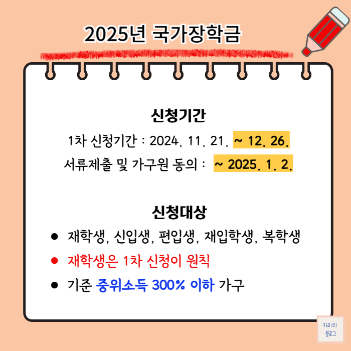 2025년 국가장학금 신청기간 및 대상