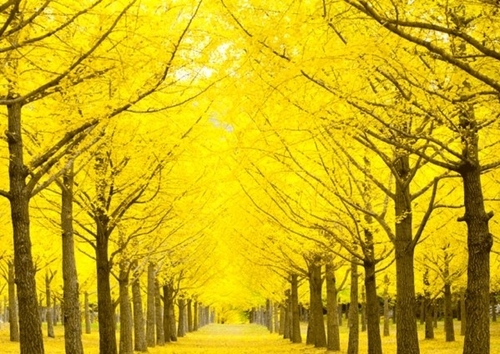 1,200여 그루의 은행나무가 나란히 서 있는 이곳은 노란 융단을 깔아놓은 듯한 장관을 연출합니다.
