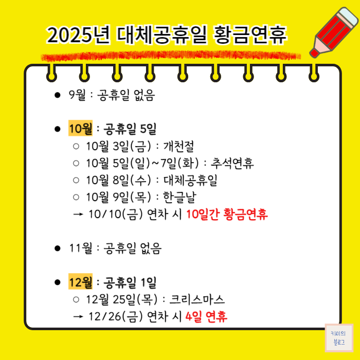 오늘은 2025년 대체공휴일 황금연휴를 미리 확인해 보겠습니다. 내년 휴가 계획을 세우거나 항공권을 예매할 때 도움이 되시길 바랍니다.