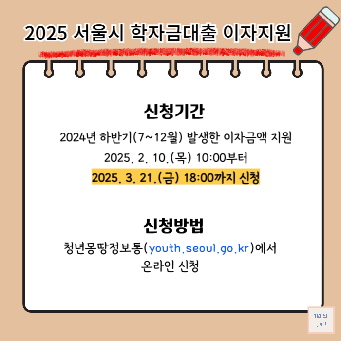 2025년 2~3월에 신청받는 서울시 학자금대출 이자지원 정책의 신청기간은