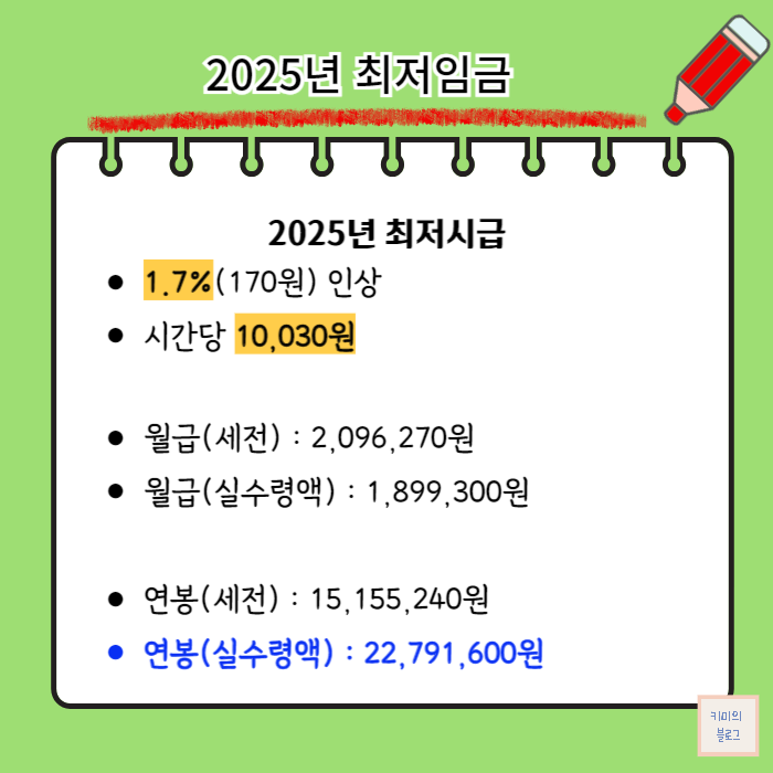 이번 글에서는 최저임금 인상에 따른 2025년 연봉 실수령액이 얼마인지 알아보겠습니다. 이 글이 정확한 소득 파악에 도움을 드리길 바랍니다.