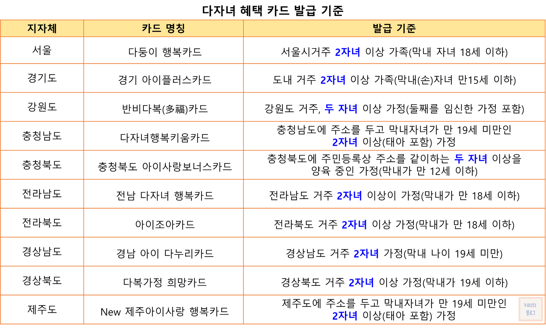 각 지자체에서 발급하는 다자녀 혜택 카드의 발급 기준도 모두 2자녀 이상 가구입니다.