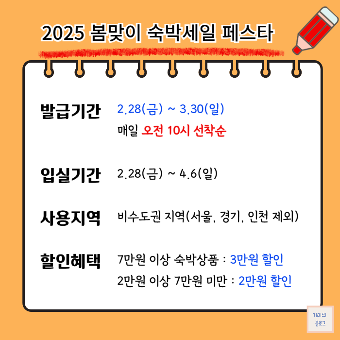 오늘 글에서는 2025 봄맞이 숙박세일 페스타의 숙박 할인권을 받는 방법, 사용 방법, 주의사항 등을 알아보겠습니다.