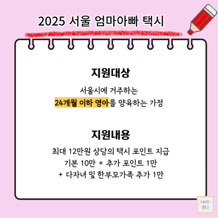 이번 글에서는 2025 서울엄마아빠택시의 지원대상, 혜택, 신청방법 등을 자세히 살펴보겠습니다.