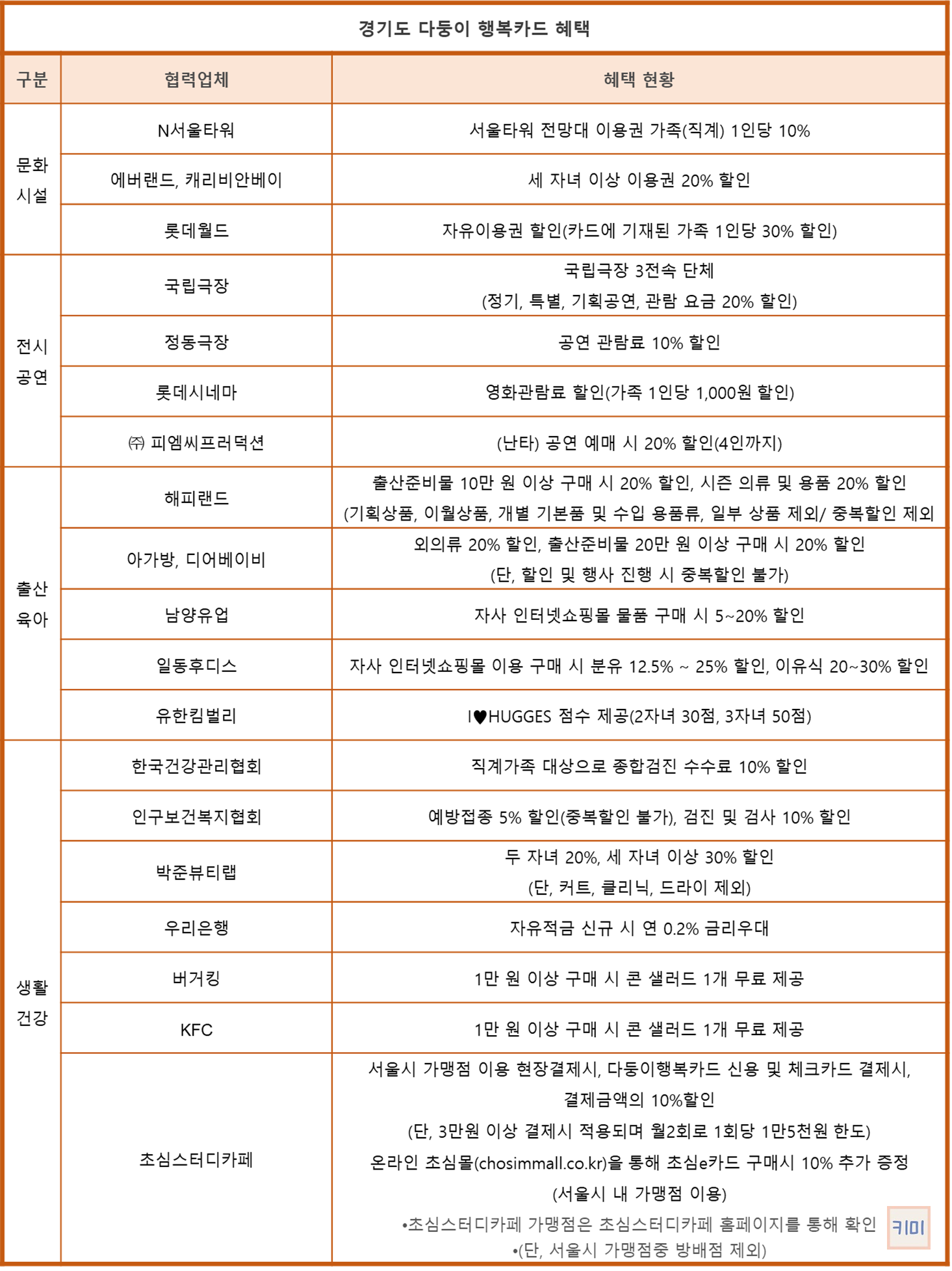다둥이 행복카드는 다자녀 가정의 생활에 실질적인 도움을 주는 유용한 카드입니다.