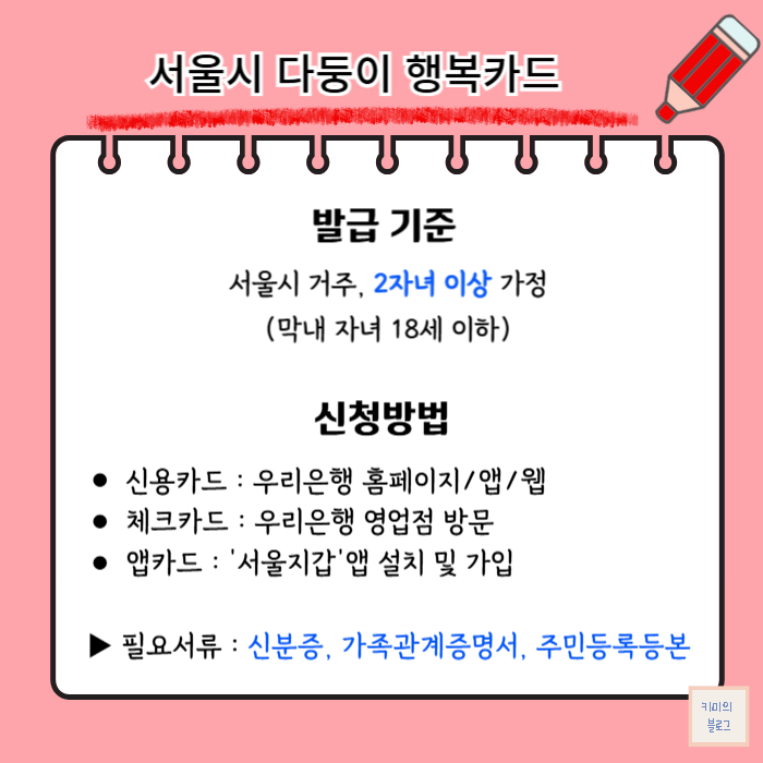 오늘은 서울시 다둥이 행복카드의 혜택, 발급 기준, 신청방법 등을 정리하여 안내해 드리겠습니다.