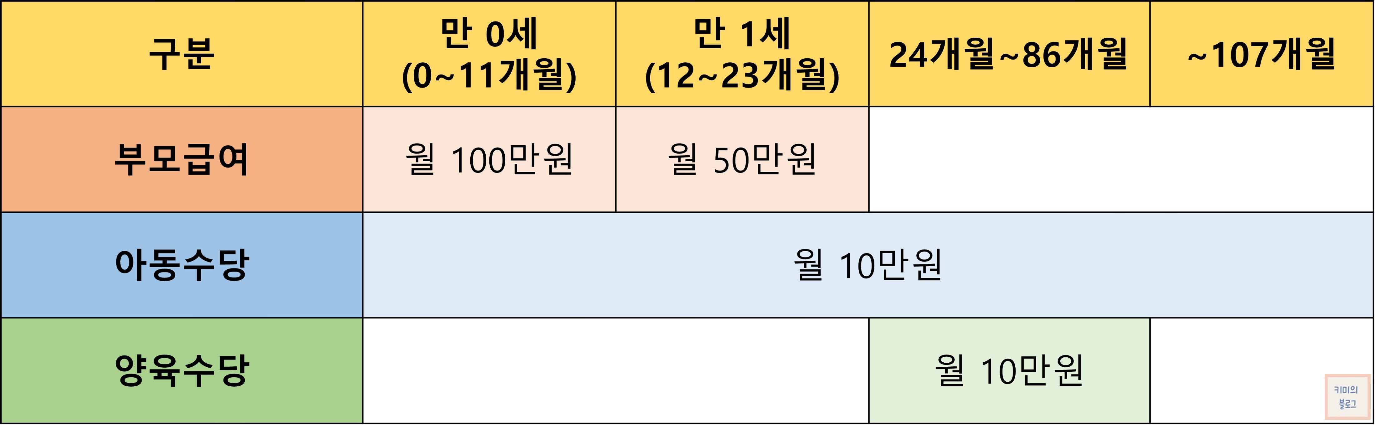 올해 우리 아이는 얼마를 받을 수 있는지, 표 하나로 깔끔하게 확인해 보세요.