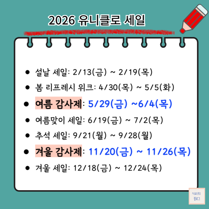 지난 데이터들을 기반으로 2026년 유니클로 세일 예상 일정을 정리해 보았습니다.