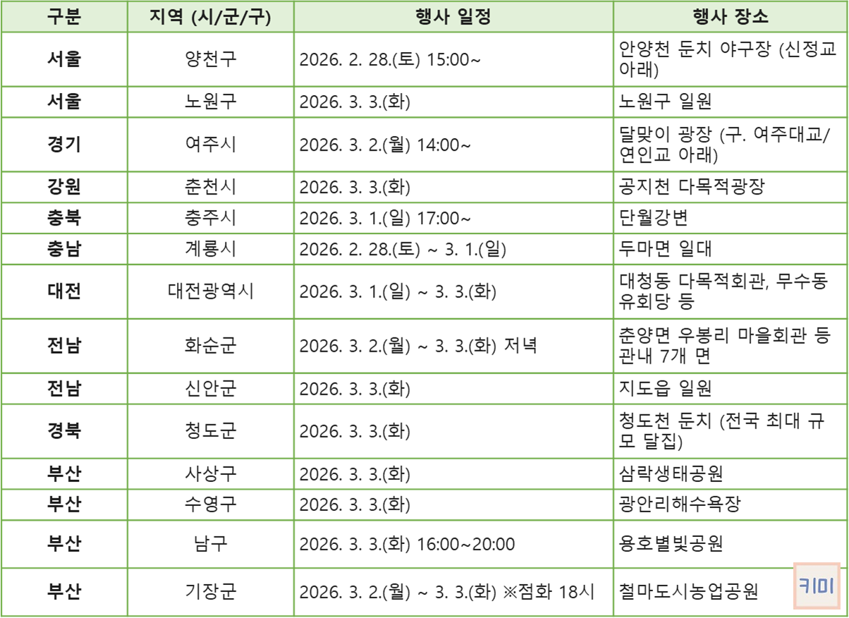 일정 : 2026. 3. 2.(월) ~ 3. 3.(화) (달집점화 3. 3. 18시)