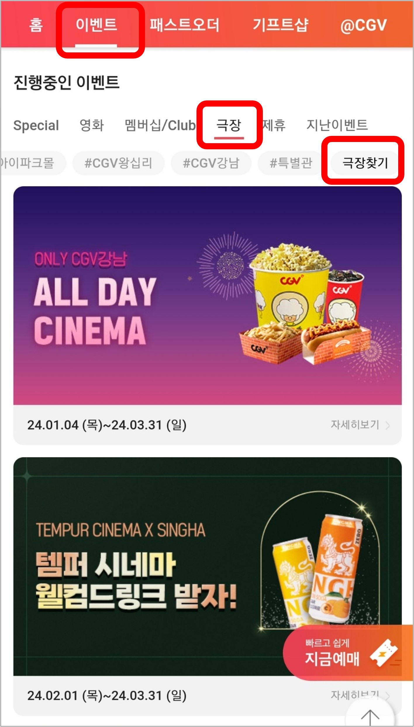 4. CGV 극장별 할인 이벤트