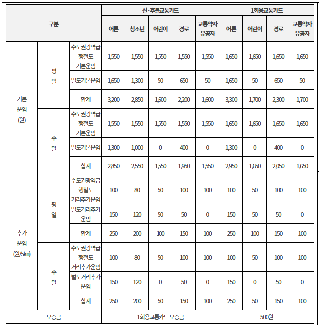수도권 광역전철 기본운임에 GTX-A 별도 기본운임이 50~1,650원 부가되는 방식입니다.