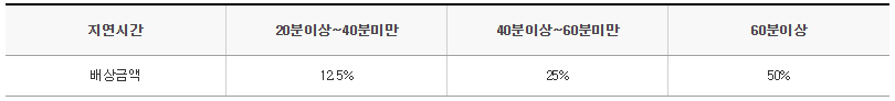 - 20분 이상 ~ 40분 미만 지연 시 : 12.5% 배상