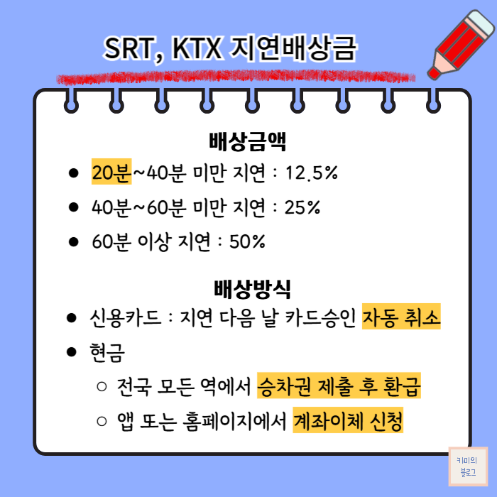 SRT와 KTX 지연배상금은 승차권을 결체한 수단으로 지연배상금이 반환되는 방식으로 지급됩니다.