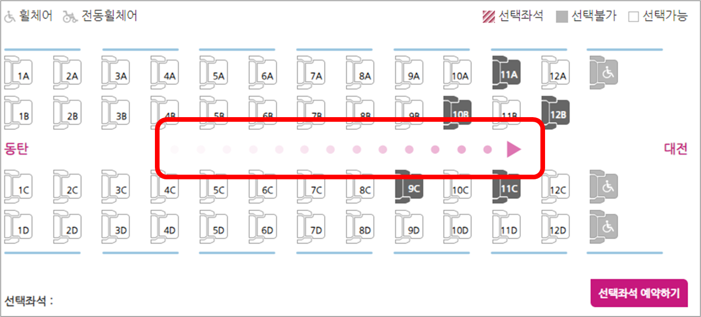또는 화장실 냄새에 민감한 분이라면 화장실에서 멀리 떨어진 위치의 좌석을 예약하시길 추천드립니다.