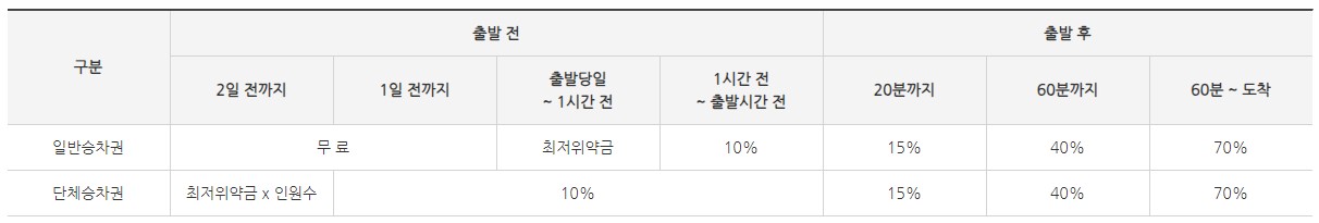 따라서 만약 열차를 놓쳤더라도 곧바로 승차권을 환불하면 취소수수료를 15%로 최소화할 수 있습니다.