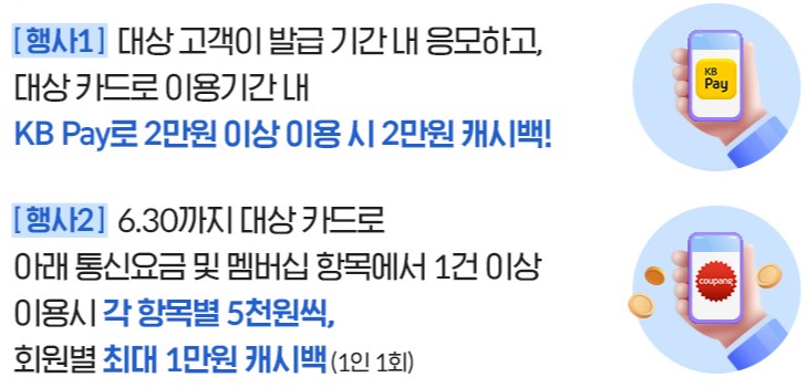 그리고 6월 30일까지 통신 요금이나 OTT구독료를 각각 5천원 이상 결제 시 최대 1만원을 캐시백 받을 수 있습니다.