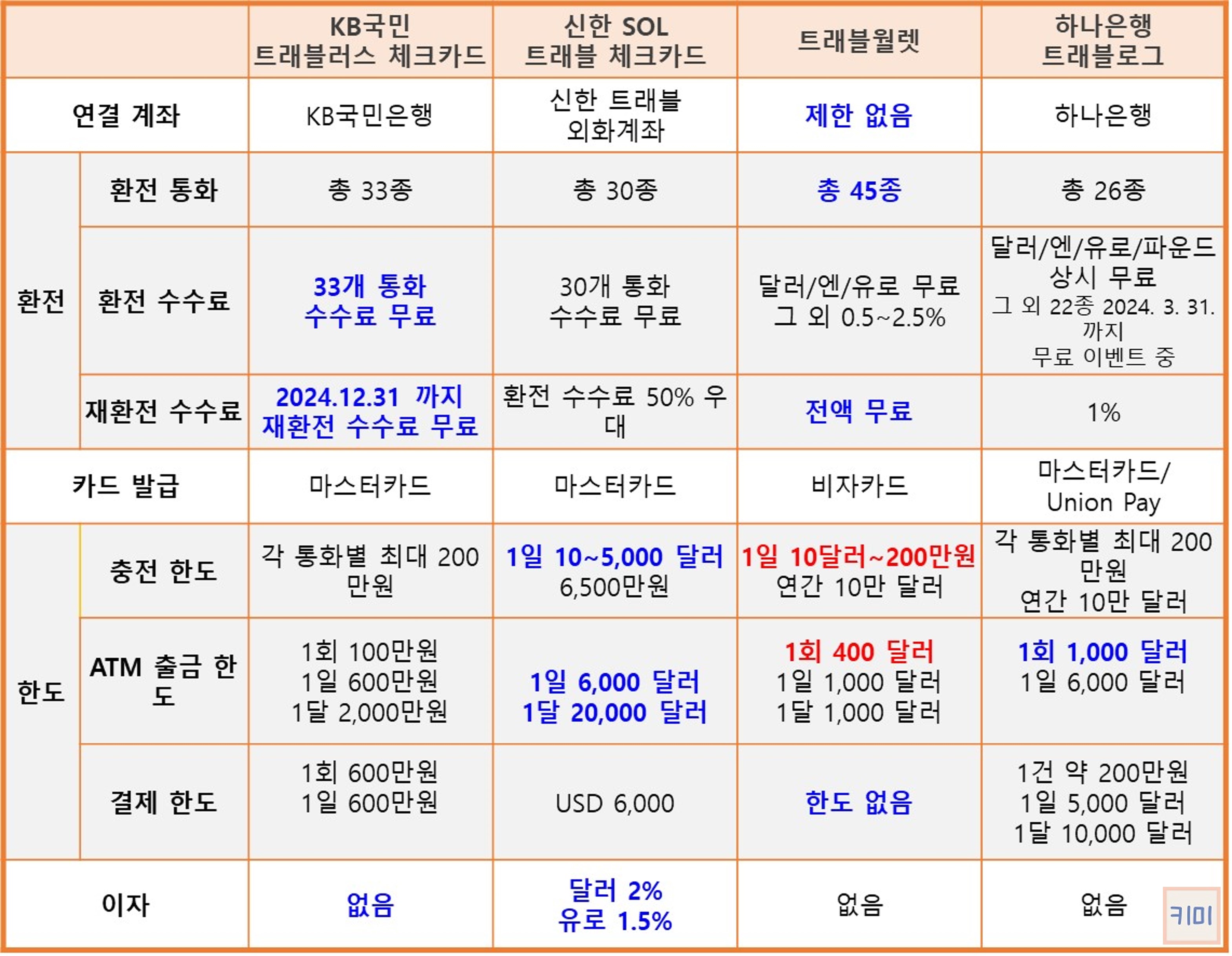 오늘은 KB국민 트래블러스 체크카드 혜택을 살펴보고 기존의 트래블 카드와 비교해 보았습니다. 해외여행을 앞두고 계시하면 이 글이 카드 선택에 도움이 되시길 바랍니다.